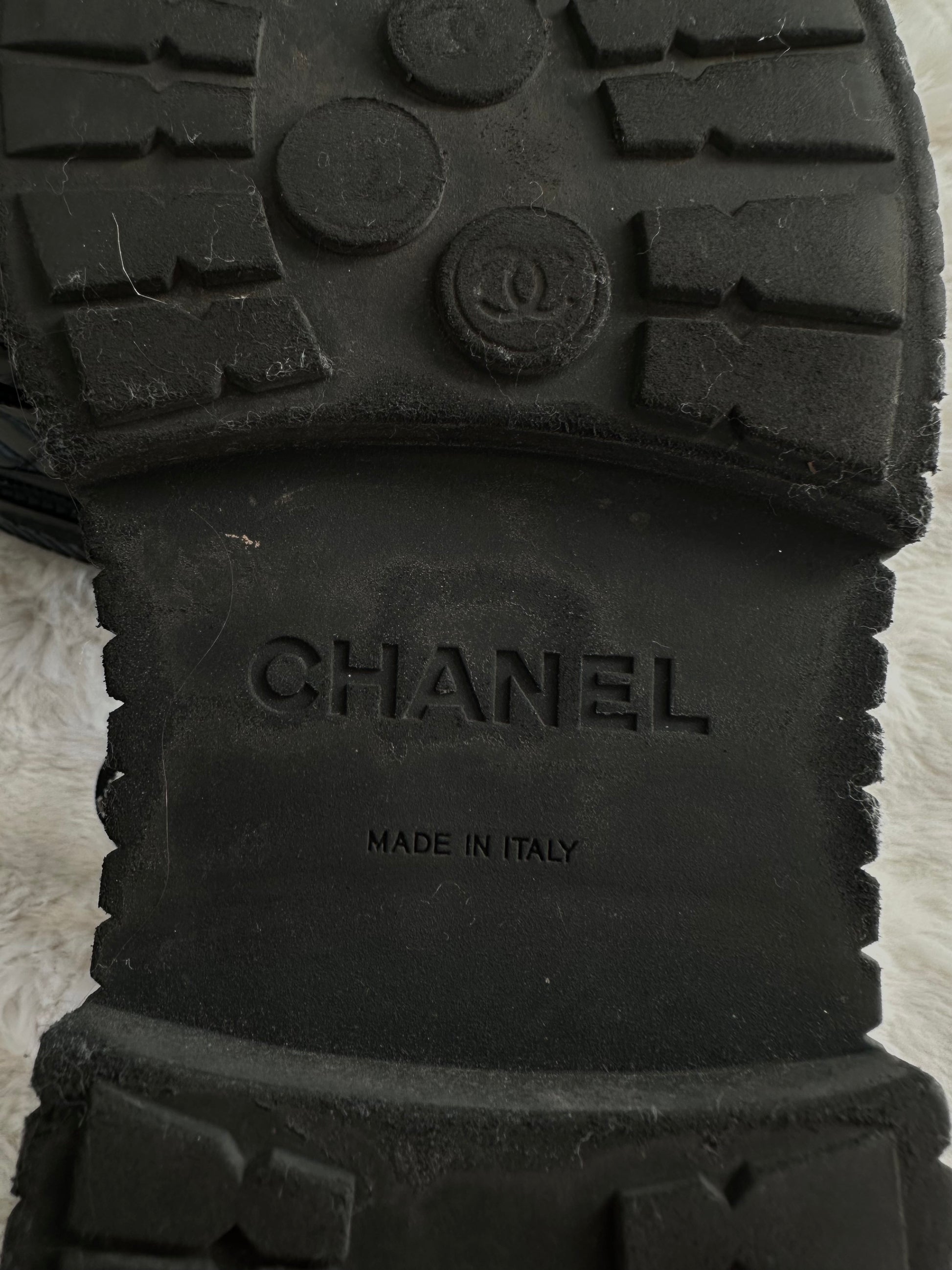 Chanel - Boots | Bottes de neige à lacets en cuir noir | T.39