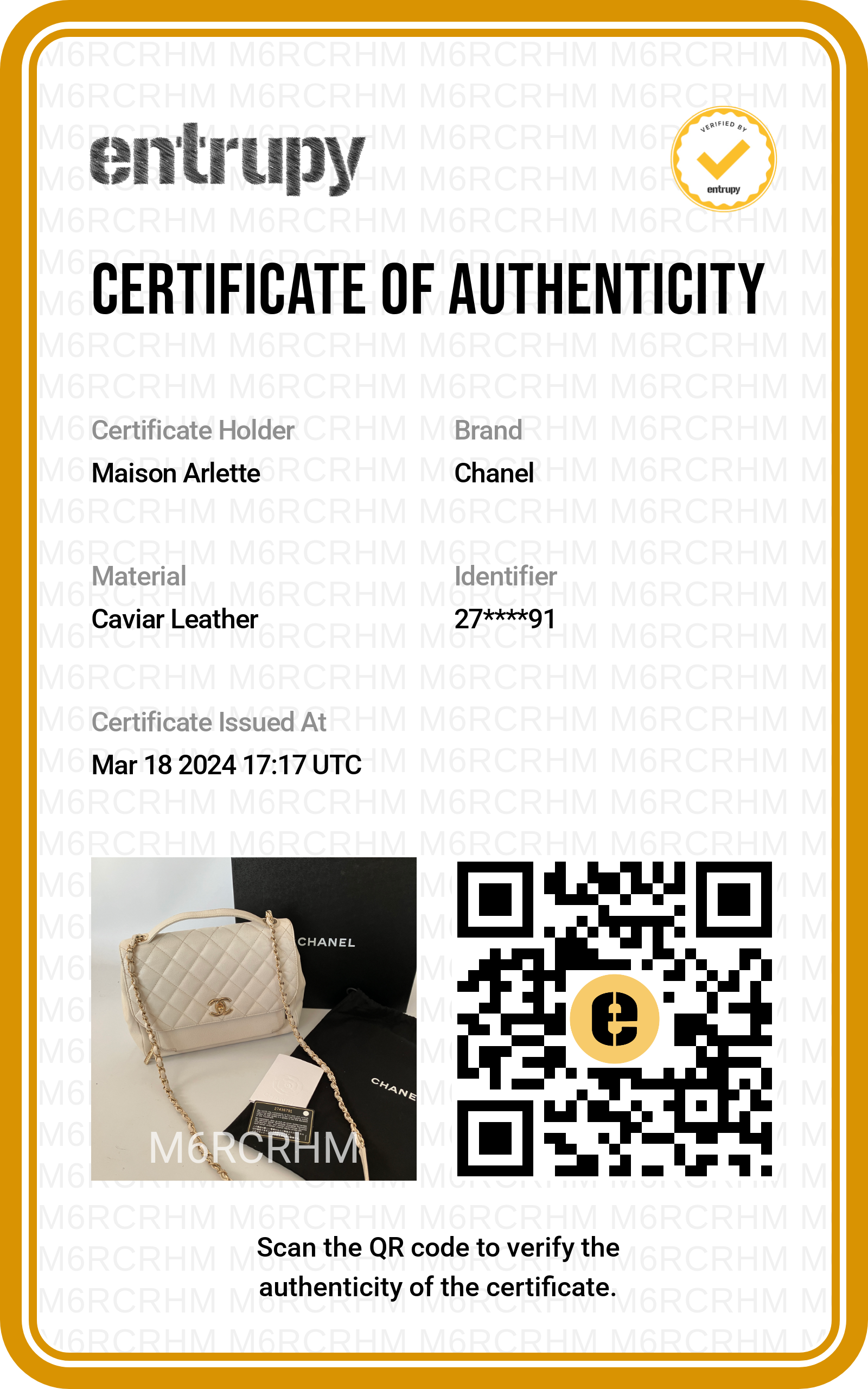 • Certificat d’authenticité Entrupy (valeur 50€) 🧾