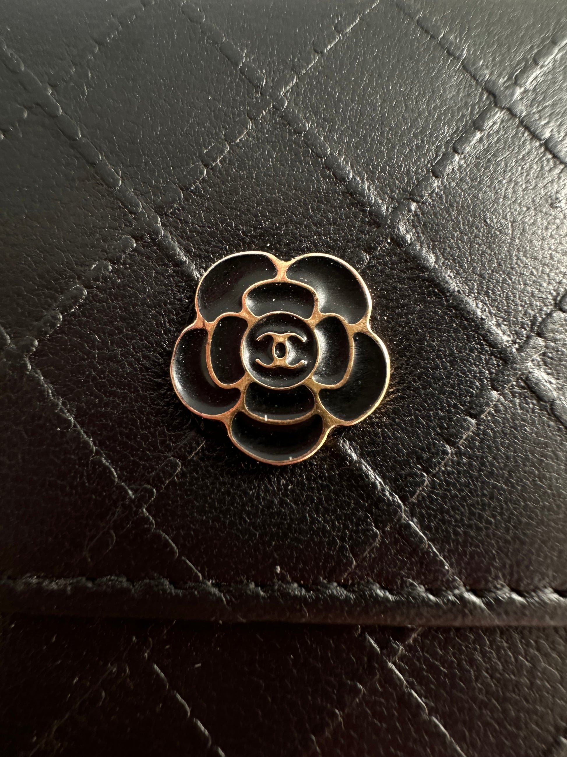 Chanel - Porte-cartes en cuir camélia noir